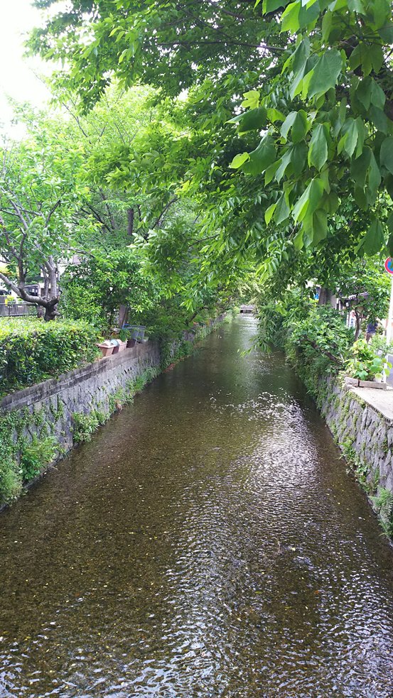 博物館から高瀬川沿いを歩いてもらい河原町に向かいました。。